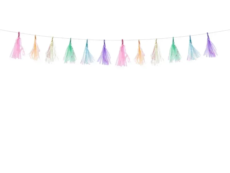 Een leuke tassel garland/ slinger van mix pastel kleuren.